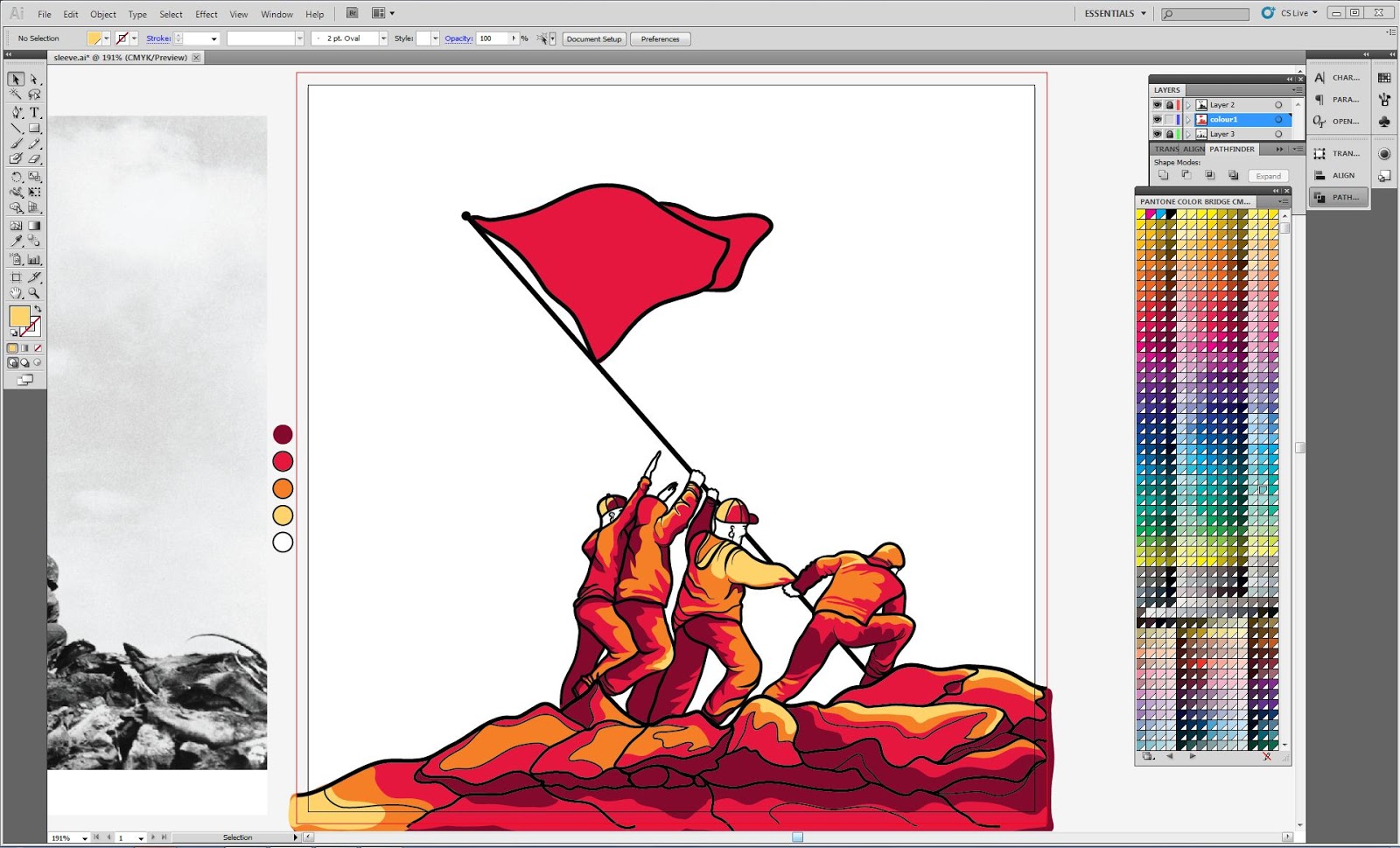 In the criticism it was mentioned that I should experiment with producing digital versions of my strongest designs picked from my five visual variations. It was suggested that the portrait grid and balaclava designs should be developed as they were the strongest designs other than my 'Iwo Jima' design.