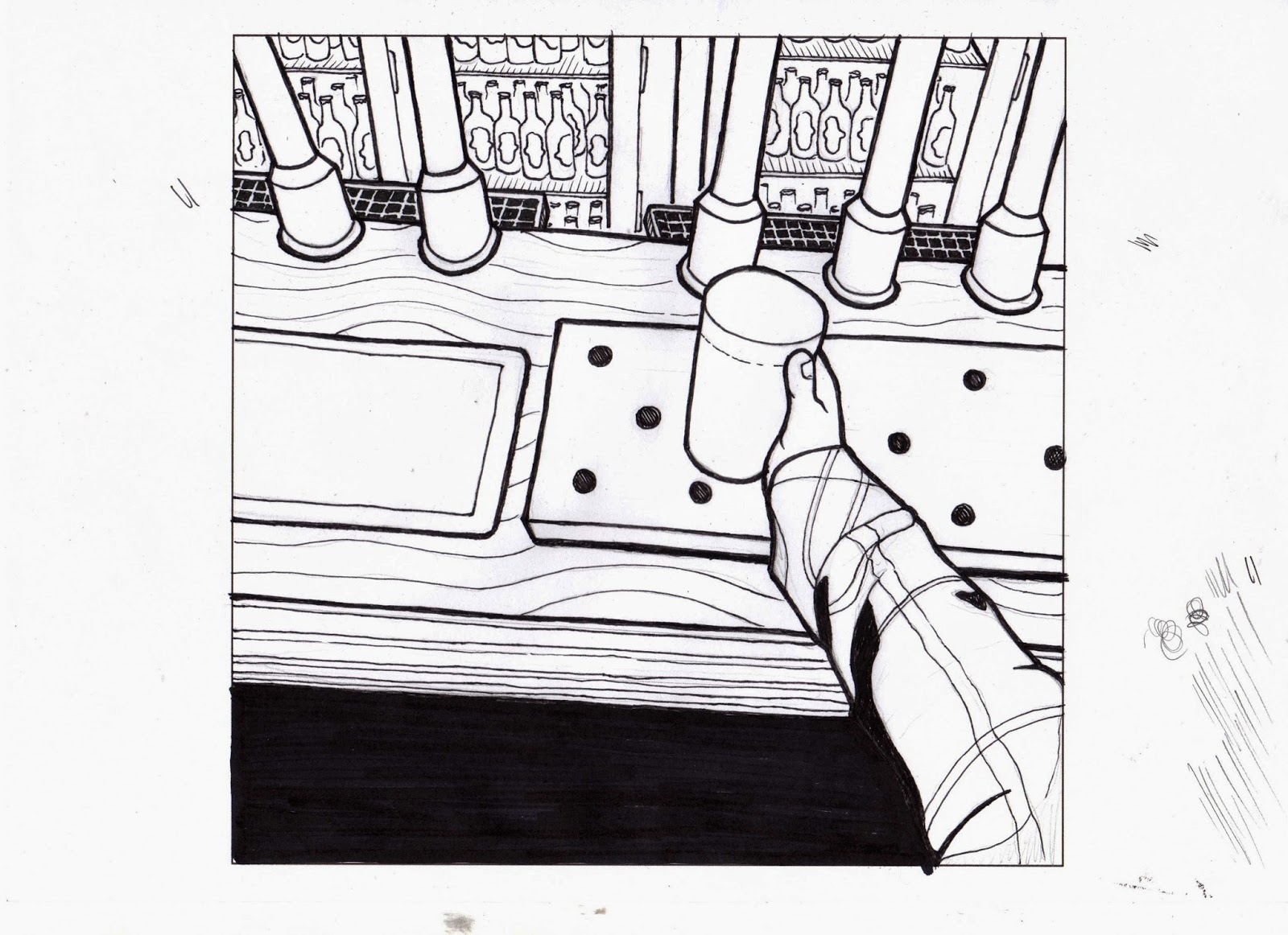 After outlining a final design I progressed with the project by creating the base illustration for the vinyl sleeve. When creating the illustration I used the primary images collected from my visit to the pub as a reference to ensure my design accurately depicted a pub scene.